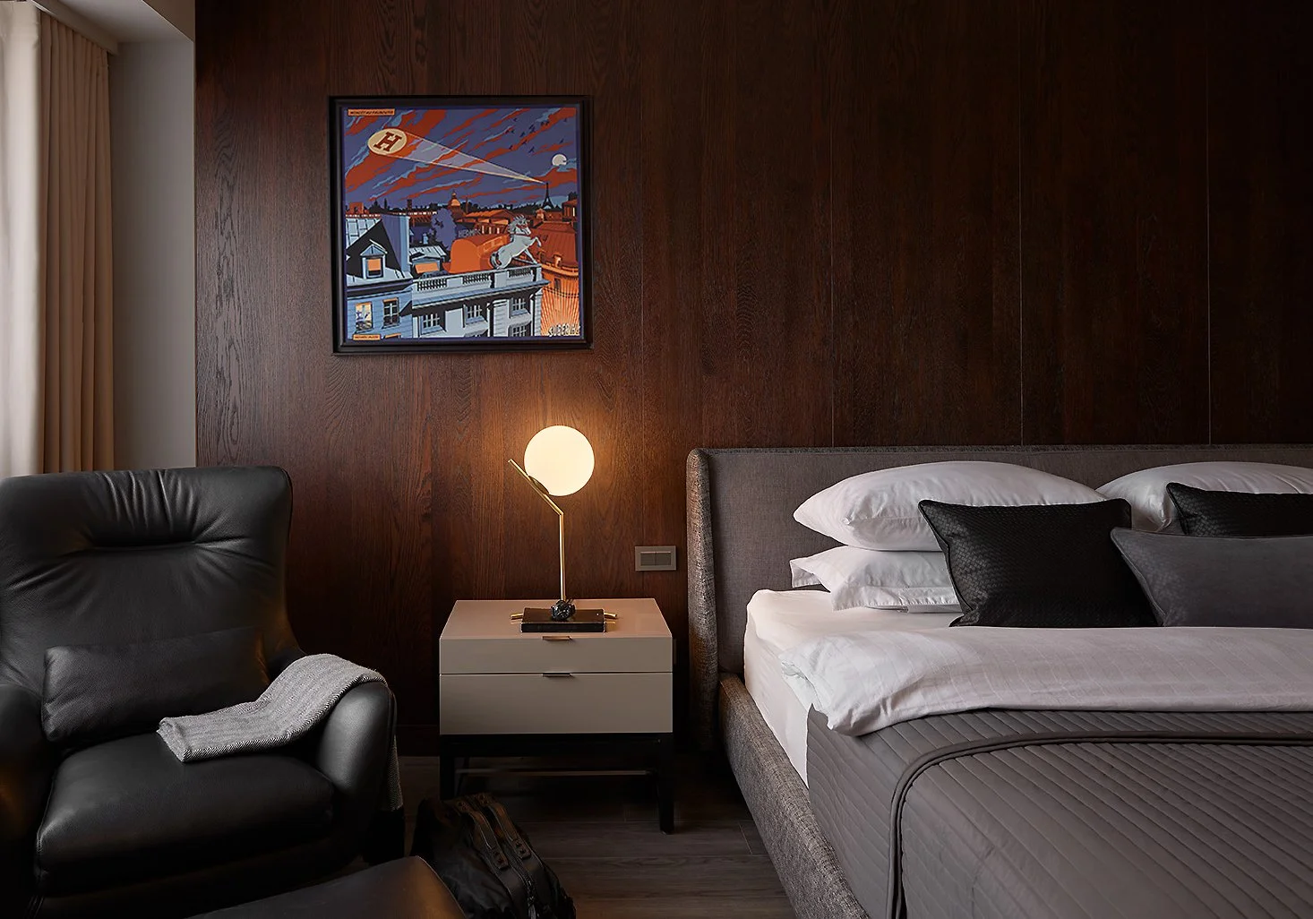 空間大膽用色並以冷調來塑造男主人氣宇不凡的品味